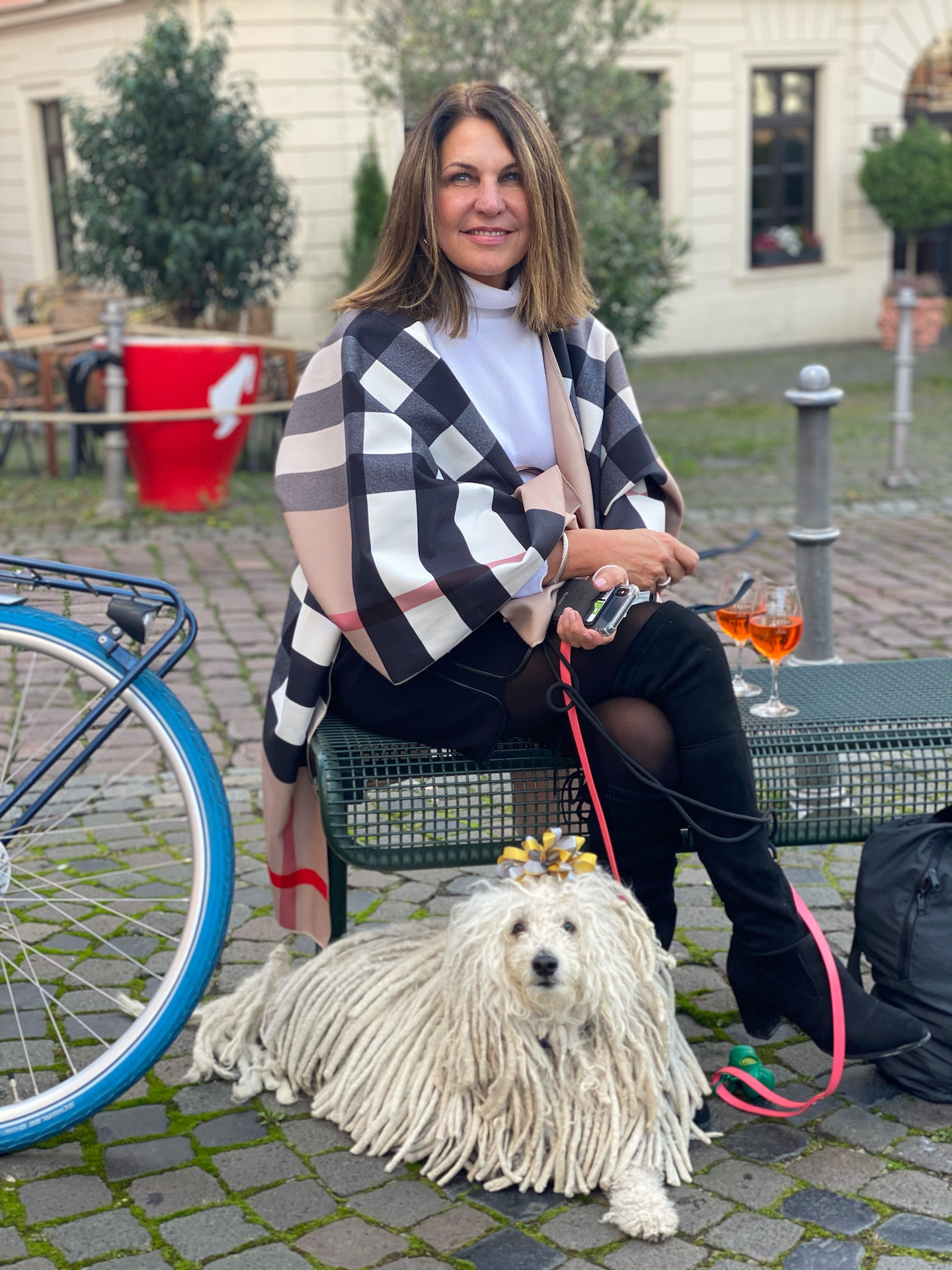 She also loves taking walks with her two Pulik, Cookie and Kira: “They go almost everywhere with us because Europe is so dog-friendly,” she shared. “We even have a bike wagon for them!”