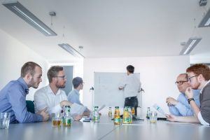 Herbert: In our innovation workshops, we invite startups to discuss a specific topic, e.g., digitisation of customer communication or predictive analytics and machine learning, for which SAS provided the keynote. Our goal is to develop as many concrete projects, or PoCs, as possible between insurance companies and startups. We usually have four to five startups pitching their idea, business model or technology and presenting it to insurers. After the pitches, the startups stand in different corners of the room like in a market, and the insurance representatives choose the most interesting startup, one that will provide exciting cooperation. The exact project idea will then be worked out in small working groups throughout the afternoon. To make this work better, each working group includes management consultants from our member companies, who moderate the process. At the end of the day, the working groups present the results to the other participants.