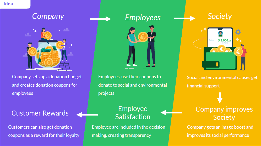 Also nicht mehr eine Firma als ganze entscheidet, wohin ihr CSR-Budget geht, sondern die Mitarbeiterinnen selbst? „Richtig, jeder Einzelne bekommt einen bestimmten Betrag zugewiesen und kann damit für sich gezielt soziale Projekte auswählen und mit seiner persönlichen Spende unterstützen.”