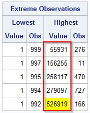 There is a hidden inefficiency in this simulation. Notice that the innermost loop in the program is a DO-WHILE loop that simulates tossing a coin sequentially until the number of heads exceeds the number of tails. You might think that this inner loop runs a few dozen times, at most. But that's not true! A participant might get "unlucky" and start out by tossing a large number of tails, it might take hundreds or thousands of tosses before the number of heads exceeds the number of tails! You can use PROC UNIVARIATE to reveal the five largest number of trials in the simulation: