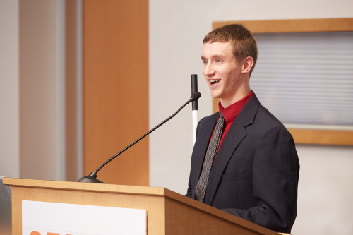 Chris Mathews, born at 26 weeks with a visual impairment and weighing less than two pounds, told of his experiences with Skynet, at Space Camp, at an engineering-focus summer camp in Baltimore and at a field study in Washington, D.C. where he interviewed members of Congress and ultimately decided to pursue a career in journalism.