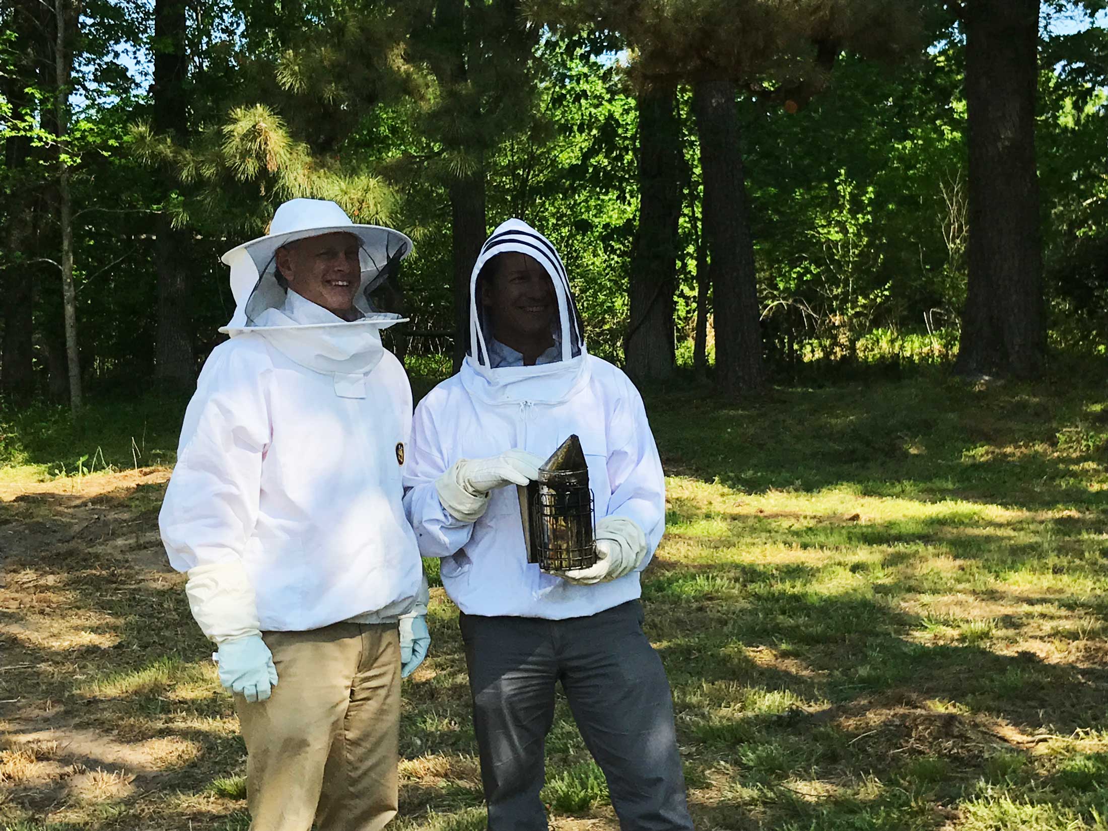 - Jerry William and Zane Lichtneger, SAS Sustainability Specialists, meet the bees.