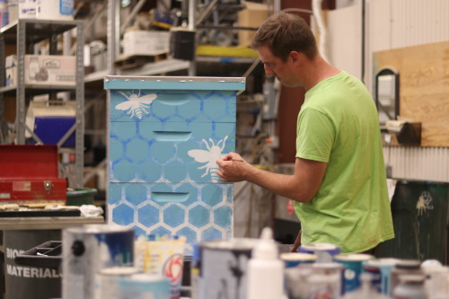 - Pete Sack, SAS Artist in Residence, paints a bee box