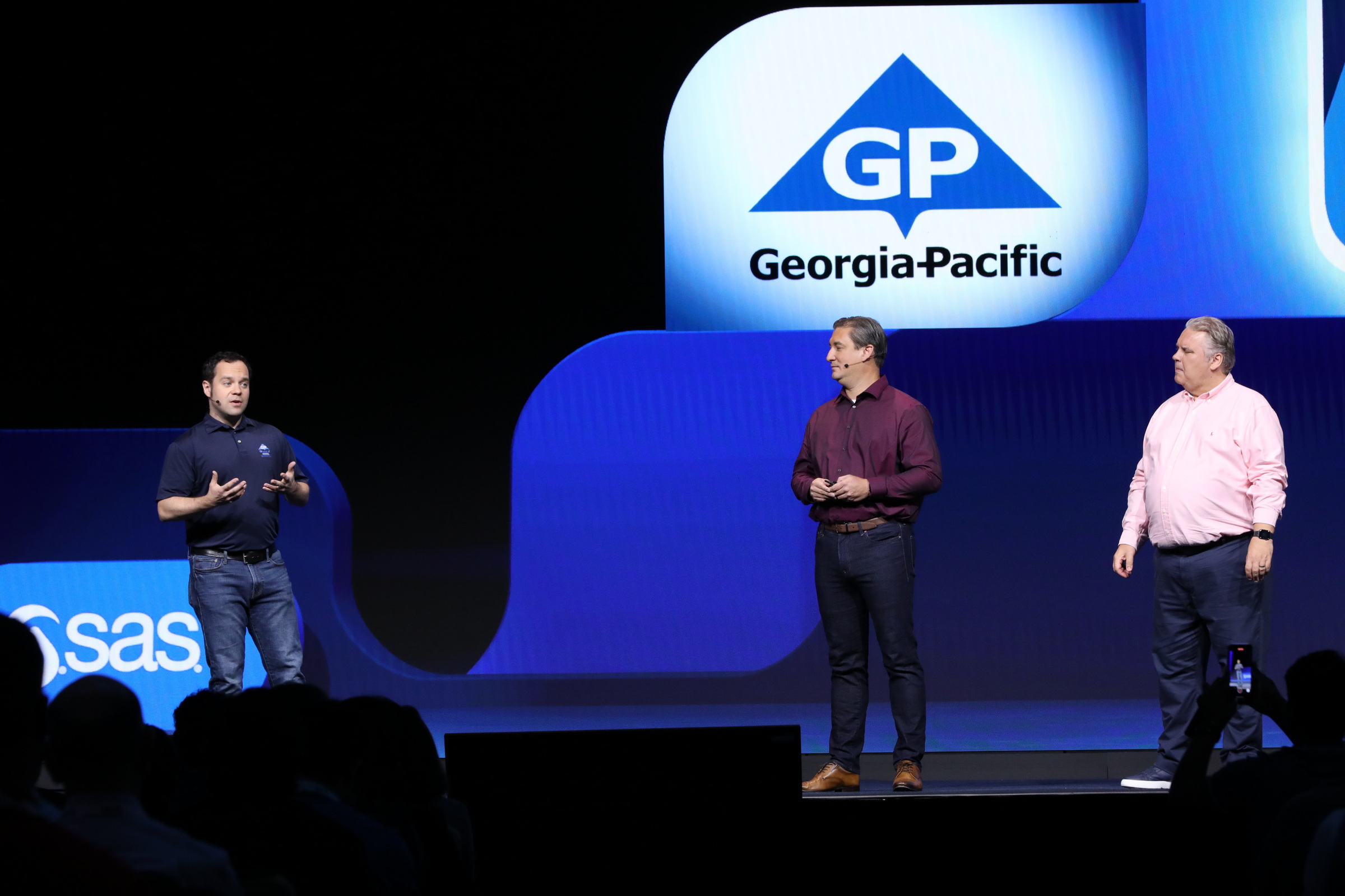 As the Day Two general session unfolded, attendees had the privilege of hearing from multiple SAS customers, including Georgia-Pacific, a leading tissue, pulp, packaging and building product manufacturer. Georgia-Pacific produces many popular name brands, including Quilted Northern, Brawny, Dixie and Vanity Fair. Sam Coyne, Georgia-Pacific’s Director of AI, took the stage with Boyd and Carrick and described how they use computer vision via SAS Analytics for IoT to solve challenges. For example: