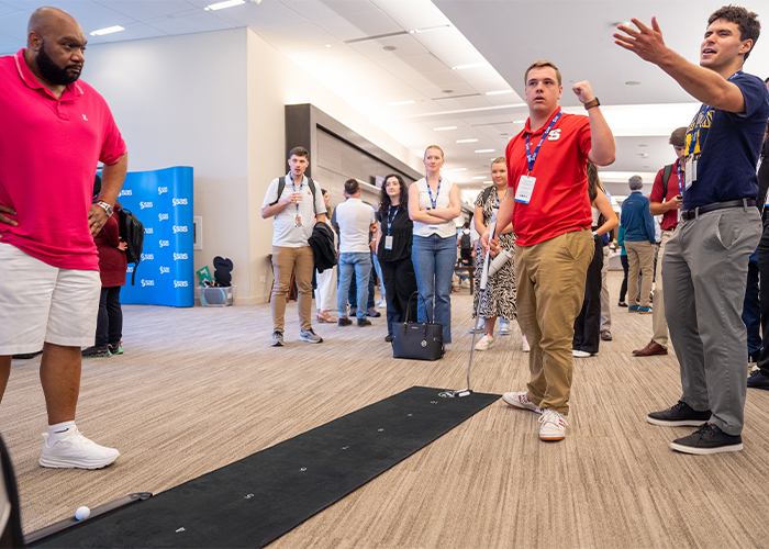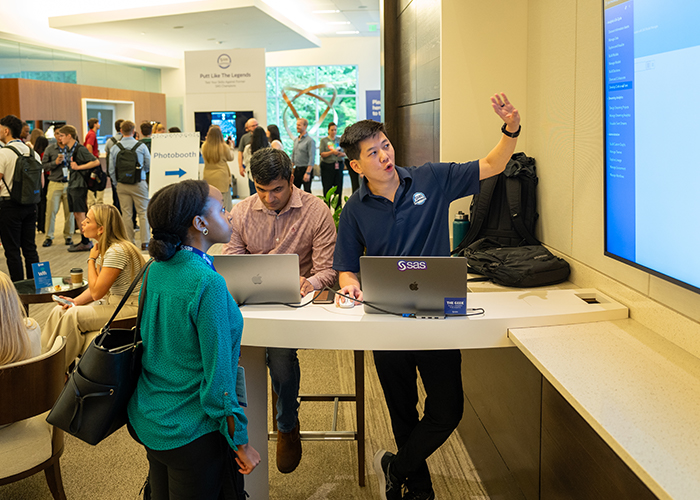 The halls at SAS headquarters were filled with hundreds of curious individuals ready to check out the Innovation Hub. Others joined online since we live-streamed my firsthand experience with global employees. Experts in quantum computing described the nuances of the emerging technology and data scientists rubbed shoulders with SAS® Viya® Workbench experts who had interns wide-eyed. I was happy to see people playing AI-powered video games, throwing darts and testing their golf swing against the pros using analytics.