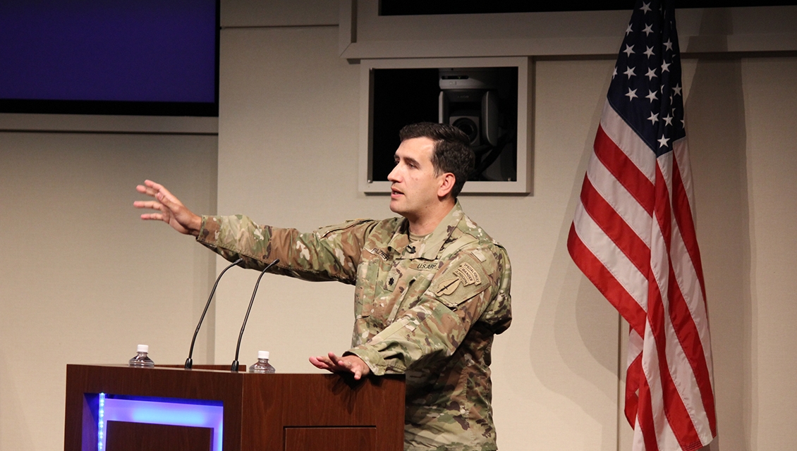 - The panel focused on technology within military operations included (left to right): Col. Edward G. Ferguson, Chief, Advanced Warfighter Capabilities and Resources Analysis Division (J81) and the Director, Space Technical Analysis Group, United States Space Command (moderator); Chief Warrant Officer 4 Nick Rife, Senior Technical Advisor/Officer in Charge, Army Foundry Platform, U.S. Army; Col. Travis Hartman, Chief Technology Officer, FORSCOM, U.S. Army; Col. Randall Linnemann, Chief Innovation Officer, XVIIIth Airborne Corps, U.S. Army. “We want to harvest efficiencies [with AI],” said Hartman. “When you can get 750,000 people saving 10 min a day… pretty soon that’s real money.” Several branches are focused on operational efficiencies through AI and machine learning.