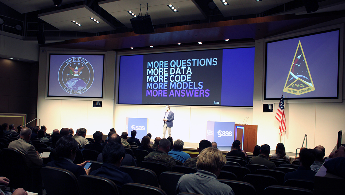 More than 300 US military, government civilian and industry professionals landed at SAS world headquarters June 25-26 for Cognitive Space Operations Reverse Industry Days. Their mission: Discuss ways AI and machine learning can accelerate decision cycles and enhance situational awareness.