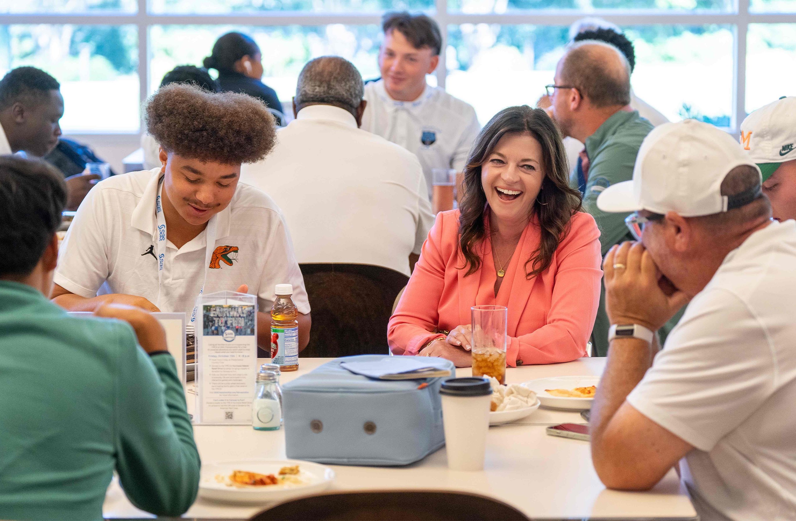 - SAS Jenn Mann talks with student-athletes during lunch
