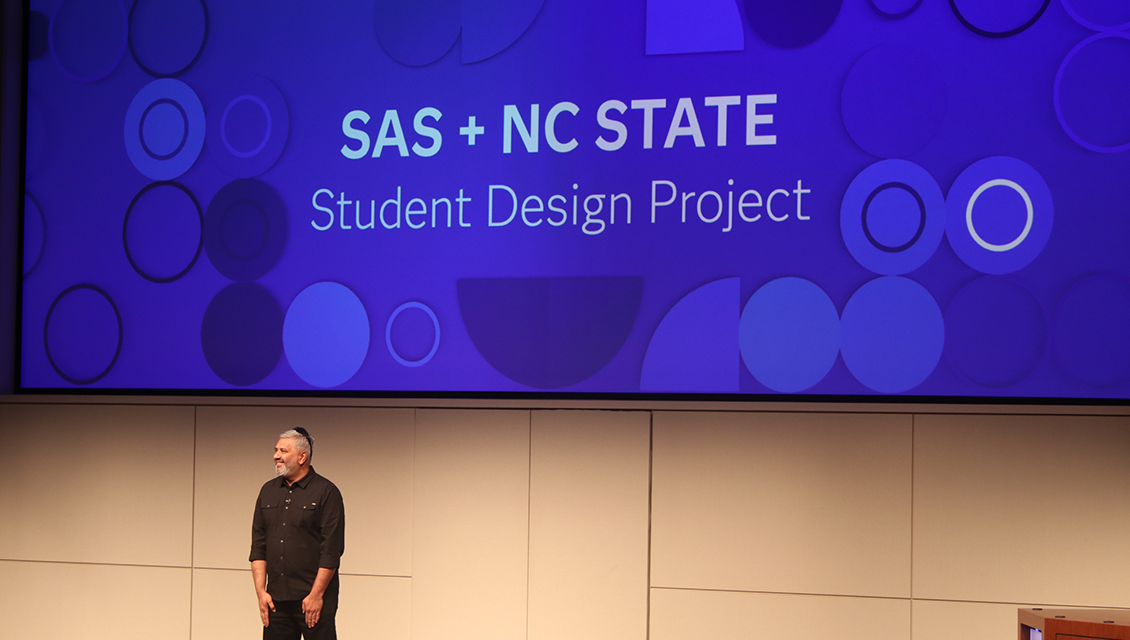 SAS Head of Product Design Rajiv Ramarajan opened by welcoming attendees and thanking the many stakeholders of this event, including NC State faculty and staff and SAS employees. He also discussed the purpose behind this year’s project assignment and the challenge proposed to students.
