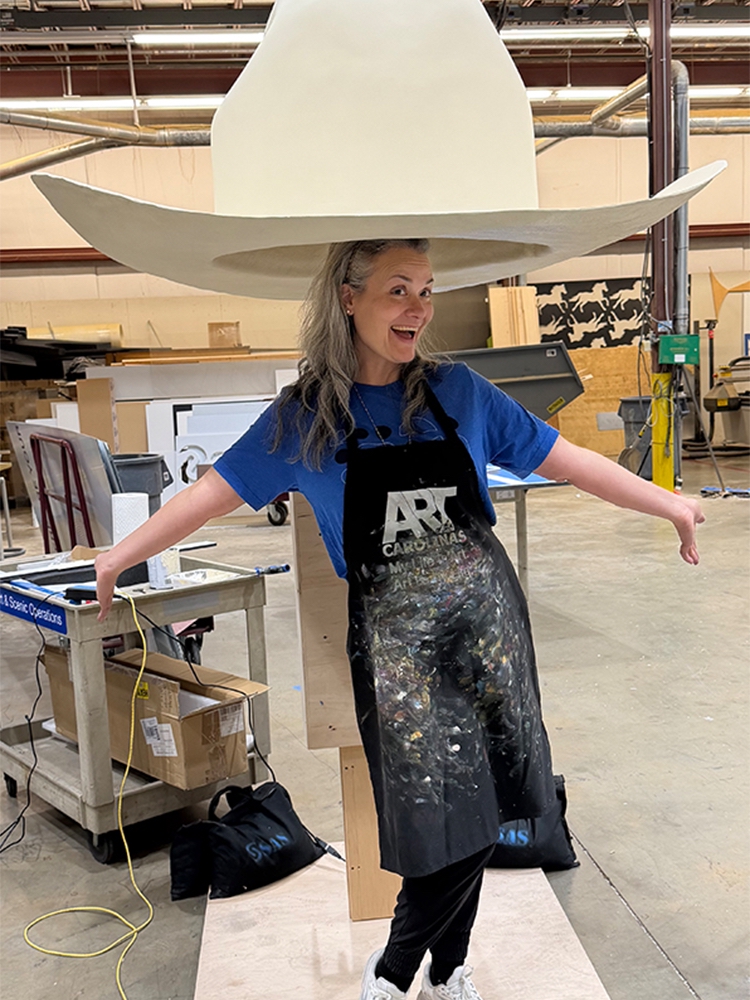 So, when the request came in to paint a giant cowboy boot and hat for SAS Innovate, her response was straightforward.