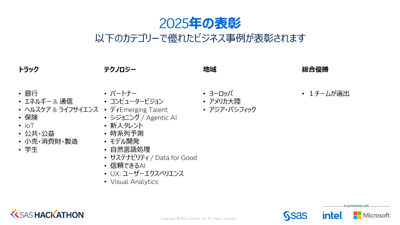 公式サイトはこちら☞ https://www.sas.com/sas/events/hackathon.html
