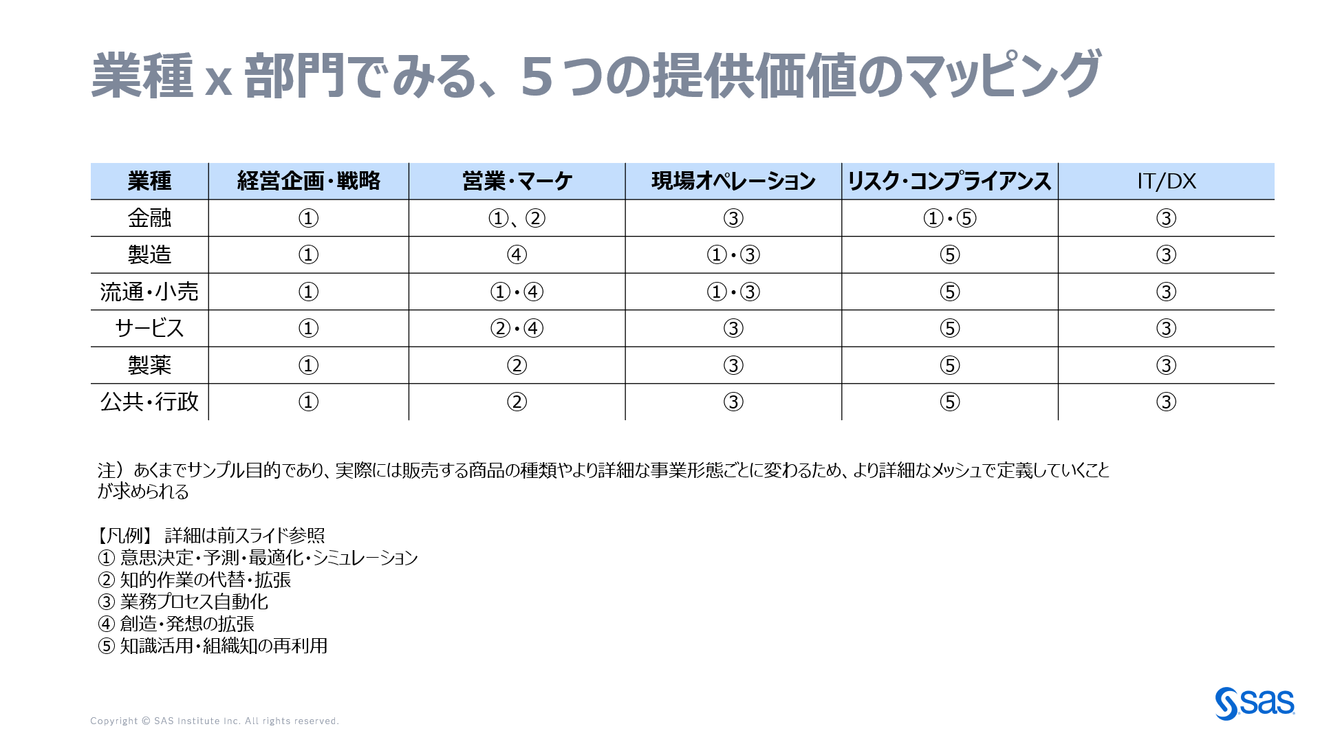 業種×部門で見る、5つの提供価値のマッピング