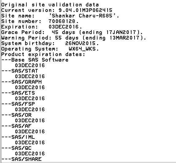 In your log you will see a listing of all the products. Here’s my log. You’ll see a very long list of SAS products in my log. Because I work for SAS as a trainer, I need to have many more SAS products installed so that I can help different customers with their varying SAS questions.