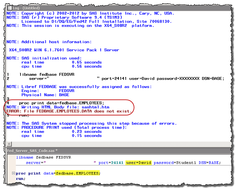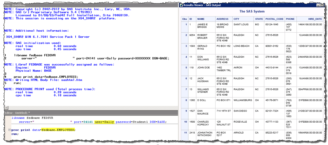 Note: The user does not need to know the physical location of where the SAS data resides. They simply refer to the Federation Server Data Source Name which in this case is BASE.