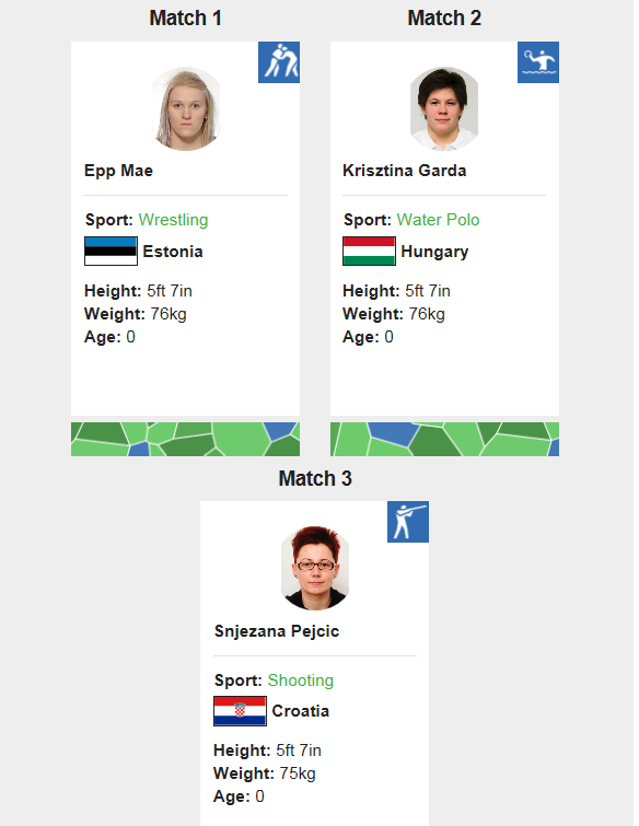 The next page did the same with your weight, the third with your age. And finally you were shown the 3 athletes most like you.