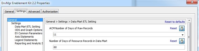 The Environment Manager Data Mart (EVDM) has always provided a configuration setting to determine how many days of resource records to keep in the data mart tables. You can see below that in a fresh SAS 9.4 M4 installation, the default setting for “Number of Days of Resource Records in Data Mart” is set to 60 days. This means that EVDM data records older than 60 days are deleted from tables whenever the data mart ETL process executes.
