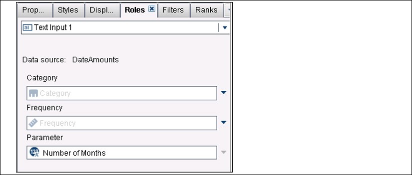 When the modified data source is initially added to the report, it contains only the Category data item Month, with a format of MMYYYY, and the measure Amount Sum for Month.