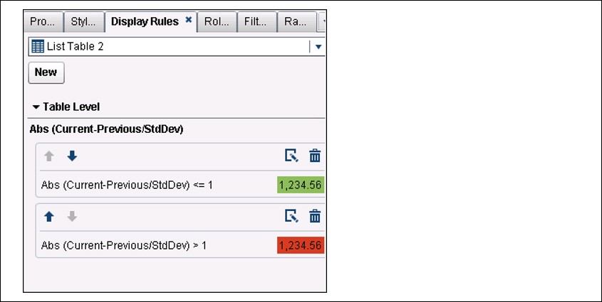 If you wish, you can add display rules to sound an alarm whenever there is an alarming month-to-month difference in comparison to the standard deviation for the n months.