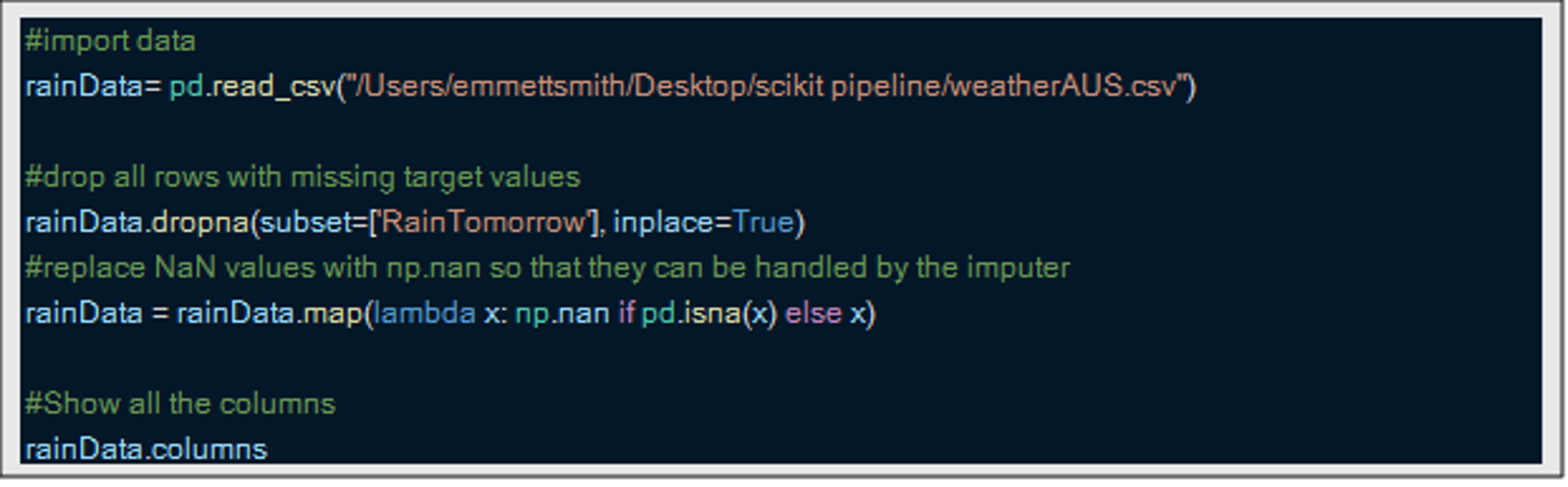 I also performed some preprocessing by removing any rows without a target value to predict and converting all missing values to NumPy’s NaN to simplify the preprocessing steps.