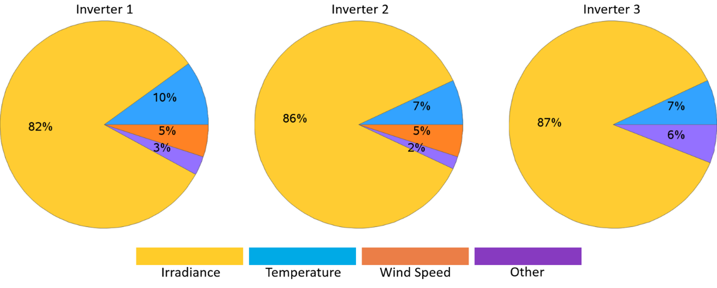 Insights from our case study revealed that temperature fluctuations were the leading cause of power loss in two of the three inverters. Solar tracking systems generally maintain optimal alignment. These findings empower operators to prioritize cooling system maintenance, optimize tracker calibration, and schedule targeted inspections. This ultimately enhanced energy yield and minimized downtime. The economic impact of these insights cannot be overstated: with individual loss factors capable of reducing power output by 2-20% depending on the issue, our predictive framework addresses inefficiencies that could otherwise cost utility-scale solar farms millions of dollars annually in lost energy production. By combining predictive accuracy with interpretability, this framework lays a strong foundation for proactive, data-driven solar asset management.
