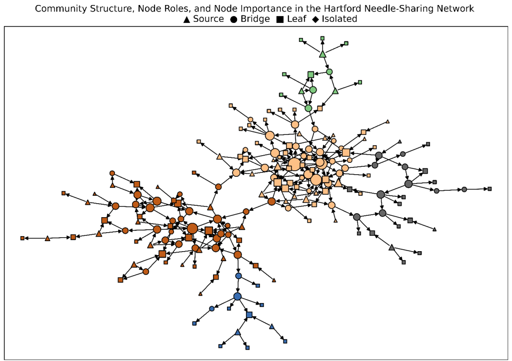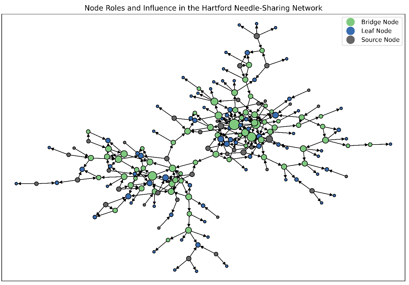 Needle sharing remains a critical public health challenge because it enables the rapid spread of infectious diseases through close, often invisible social connections. Understanding where these behaviors concentrate and which individuals play a central role is essential for designing effective, targeted interventions. Limited time and resources make this especially true.