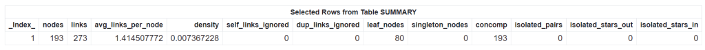 To move from visual intuition to more concrete insight, we next run the summary action from the NETWORK action set to quantify key structural properties of the graph. Here, we show the corresponding code.
